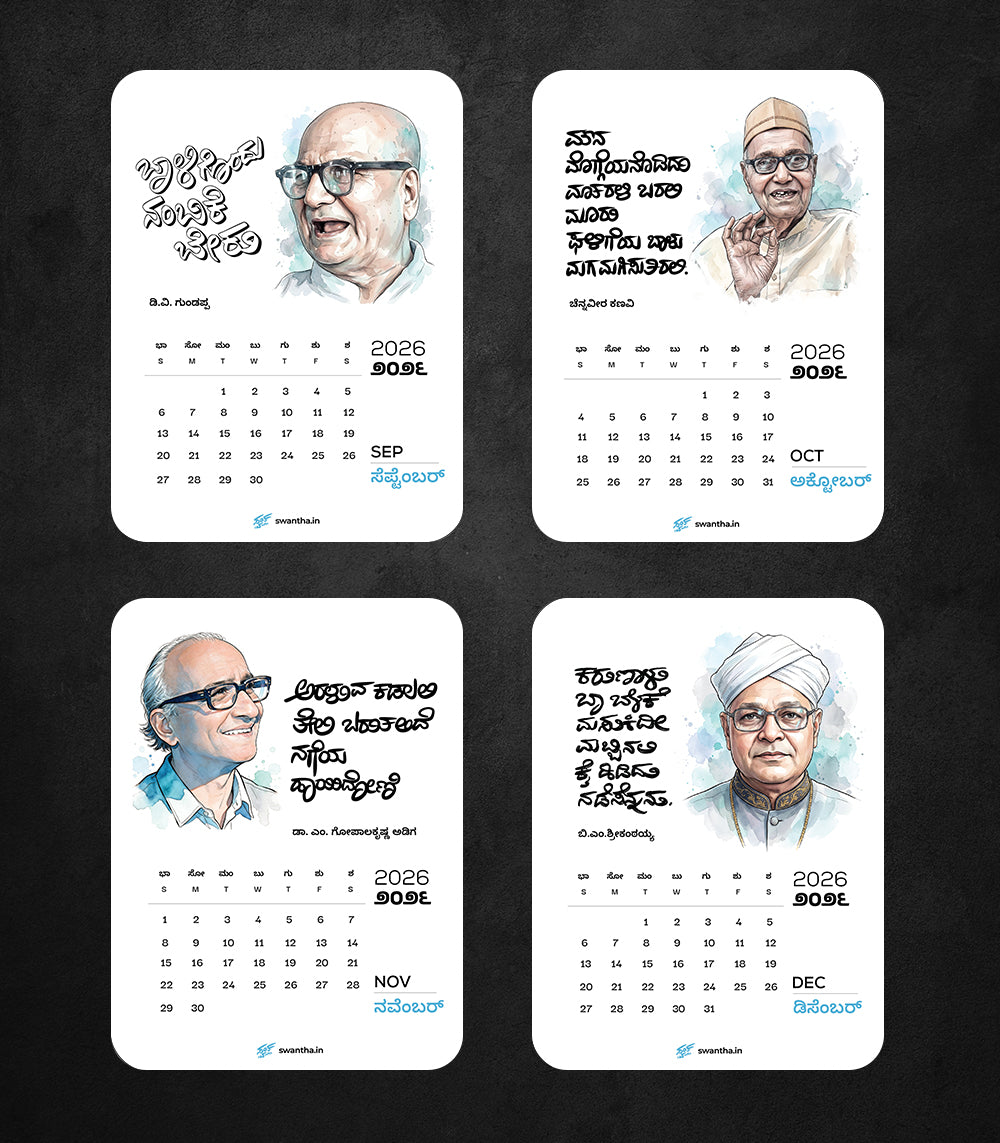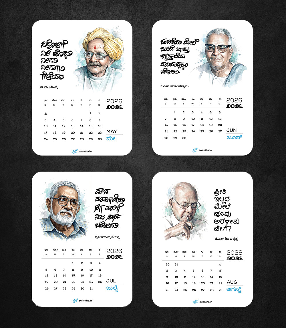 We are thrilled to present our 2026 Desk Calendar, celebrating the timeless legacy of legendary Kannada poets. Their iconic verses live on in the hearts of every Kannadiga, echoing across generations.